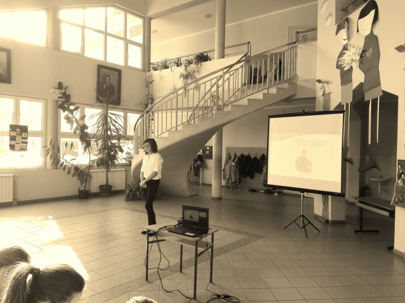 1848. március 15-e a történelem magasságából szemlélve csupán egy egyszerű esős tavaszi nap volt. Ám iskolai tanulmányainkból tudjuk, hogy ezen a napon Pesten forradalom zajlott. E nap eseményeit elevenítette föl ünnepi műsorunkban a hetedik osztály. A fiúk részleteket mondtak el Petőfi naplójából, Kossuth beszédéből, de megemlítették név szerint a márciusi ifjakat is. A lányok pedig a márciusi eseményekben résztvevő asszonyok életrajzát mutatták be röviden.